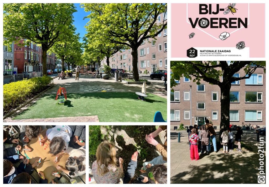 Met hulp van de enthousiaste jonge matrozen uit groep 2, 3 en 5 van de basisschool hebben we de handen uit de mouwen gestoken. Vol goede moed strooiden zij zaadjes in de boomspiegels en in de school geveltuinen. Onder liefdevolle begeleiding van Sanne en Shravan werd er niet alleen gezaaid, maar ook water gegeven én gedroomd: in super tekeningen (bijna kunst) lieten de kids zien hoe het straks mag worden.